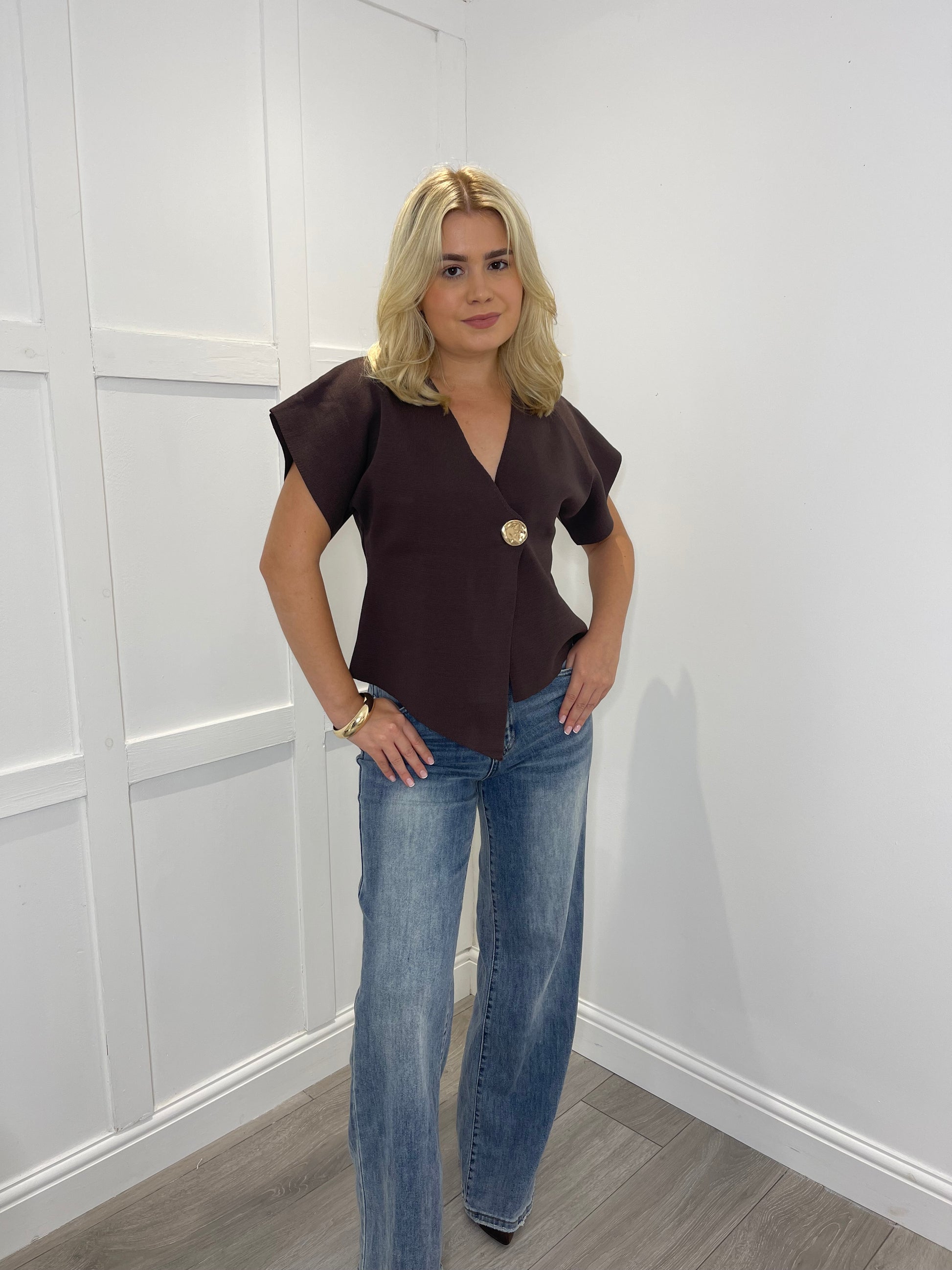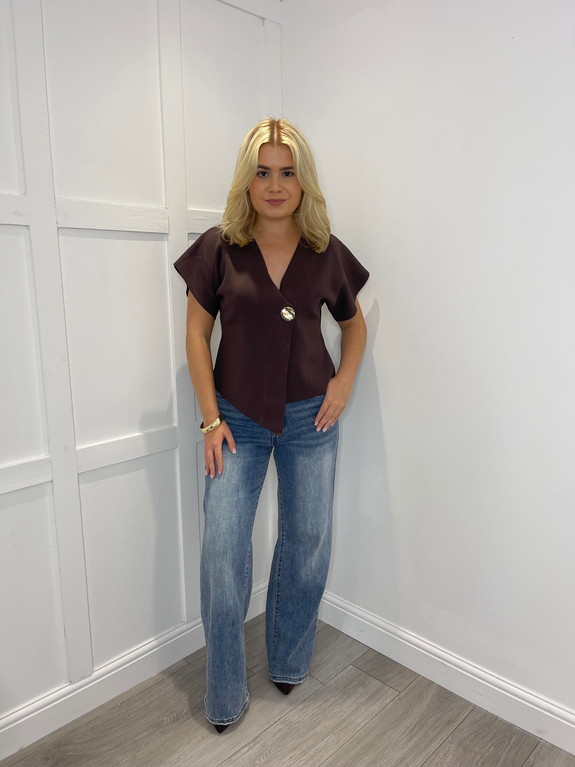 MAGGI Chocolate Brown Fine Knit Asymmetric Cardigan